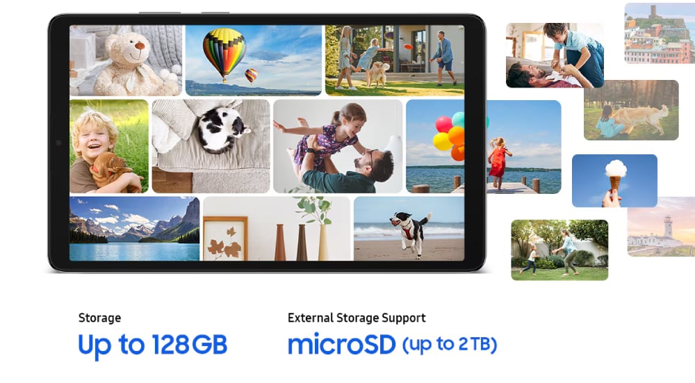 ไม่ต้องกังวลเรื่องพื้นที่เต็มอีกต่อไป! Galaxy Tab A11 มาพร้อมหน่วยความจำ RAM สูงสุด 8GB เพื่อให้คุณใช้งานหลายแอปพร้อมกันได้อย่างรวดเร็วและลื่นไหล ไม่ติดขัด พร้อมพื้นที่เก็บข้อมูลภายใน 128GB ที่จุไฟล์ขนาดใหญ่ได้สบาย ๆ และหากยังไม่พอ คุณสามารถขยายพื้นที่จัดเก็บข้อมูลได้สูงสุดถึง 2TB ด้วยการ์ด microSD จัดเก็บทุกสิ่งที่สำคัญได้อย่างไร้ขีดจำกัด