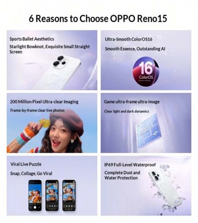 | สิ่งที่ให้มาในกล่อง | OPPO Reno 15 รุ่น 5G (12/512GB)จอ 6.32 นิ้ว รีเฟรชเรตสูงสุด 120Hz | แรม | 12 |