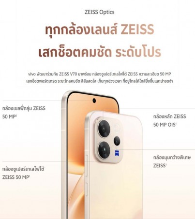 vivo V70 รุ่น 5G(8/256GB) จอ 6.59 l Snapdragon 7 Gen 4 l ZEISS(By SuperTStore)