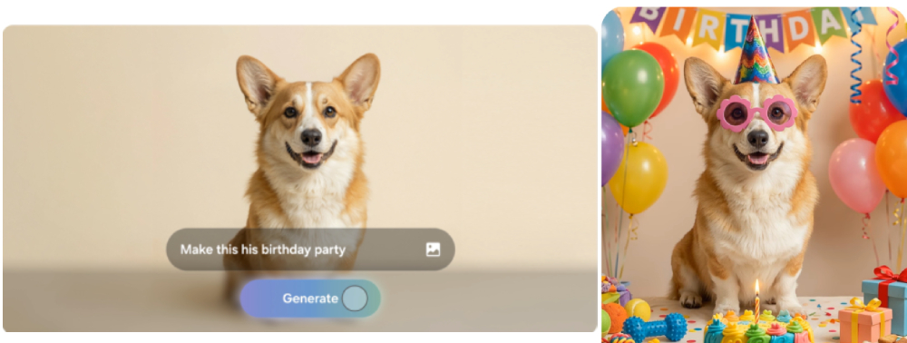 อยากเพิ่มเครื่องประดับให้น้องหมา ลบวัตถุที่ไม่ต้องการ หรือปรับองค์ประกอบภาพใหม่?แค่อธิบายสิ่งที่อยากได้แบบสั้น ๆ AI จะเนรมิตภาพตามจินตนาการของคุณให้เสร็จในพริบตา