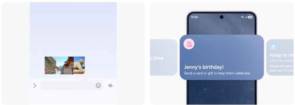 Now Nudge ขับเคลื่อนด้วย Galaxy AI สามารถอ่านบริบทบนหน้าจอและแนะนำทางลัดที่เหมาะสมทันที ช่วยลดขั้นตอน พร้อมแนะนำข้อความอัตโนมัติอย่างชาญฉลาด เช่น หากมีคนขอรูปจากทริปที่ Seoul ระบบจะเด้งปุ่มแชร์รูปให้ทันที พร้อมค้นหารูปที่เกี่ยวข้องใน Gallery ให้คุณเลือกและส่งได้ในไม่กี่แตะ ง่าย เร็ว ไม่ต้องเสียเวลาค้นเอง ✨