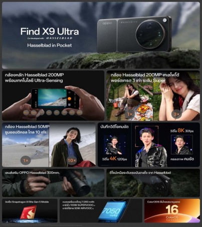 | MODEL | OPPO Find X9 Ultra รุ่น 5G(16+512GB) จอ 6.82 l แบต 7,050 mAh lกล้องหลัก 200MP (By SuperTStore) | ROM | 512 |