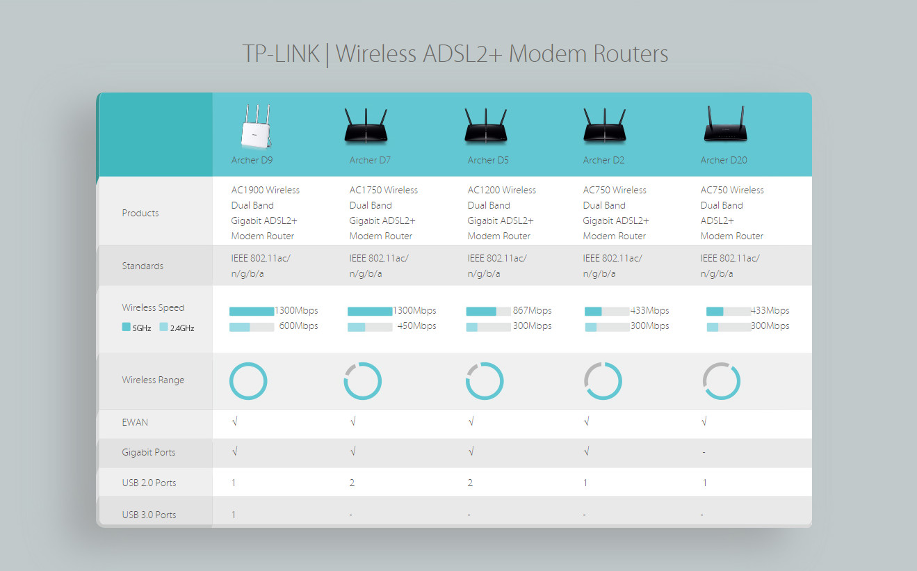 TPLINK AC750 Wireless Dual Band ADSL2+ Modem Router ARCHER-D20