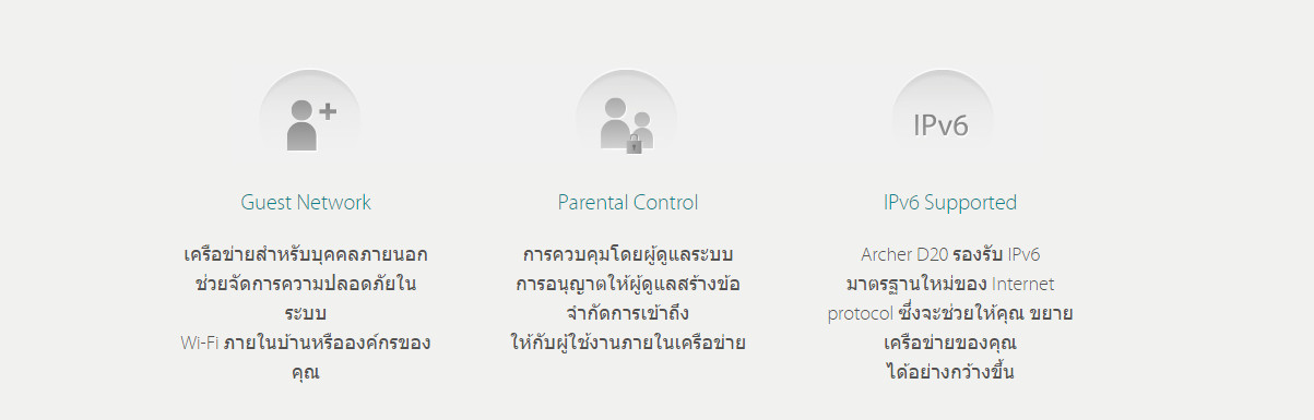 | Button | 1 Power On/Off Button, 1 Wi-Fi On/Off Button, 1 WPS/RESET Button | การรับประกัน | รับประกันโดยร้านผู้จัดจำหน่าย |