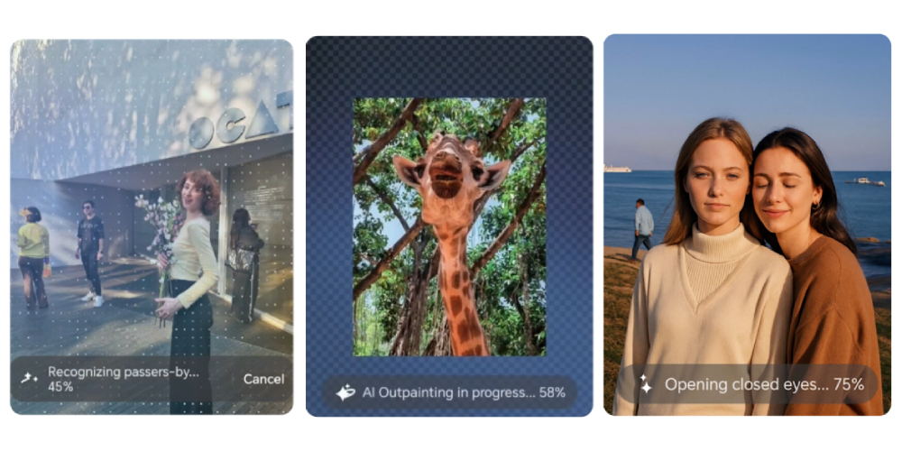 AI Eraser ลบสิ่งกวนใจ คนเดินผ่าน หรือฉากรกๆ AI Outpainting ขยายภาพให้กว้างกว่าเดิม AI Eyes Open รูปหมู่เป๊ะ ทุกคนตาเปิด ไม่มีใครโดนแซวอีกแล้ว
